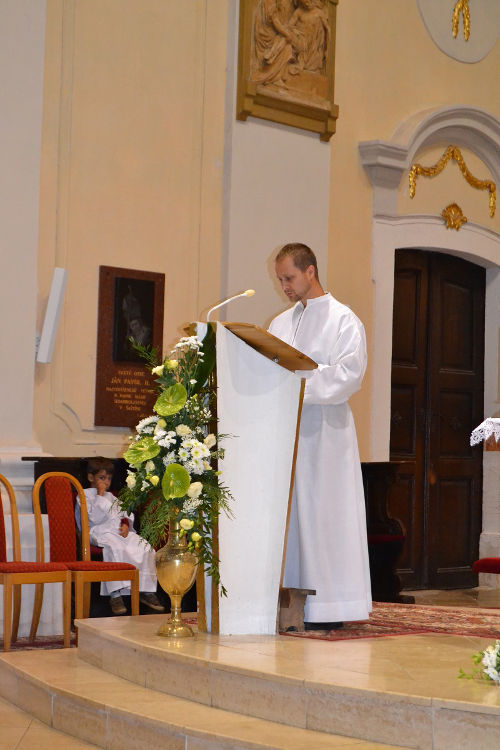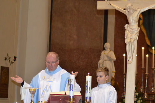 Sv. omša s hlavným celebrantom - don Jozefom Slivoňom SDB, vicepostulátorom procesu blahorečenia dona Titusa Zemana, pôsobiacom v Ríme, po nej krátka adorácia a program spoločenstva MZK - beseda o Božom služobníkovi don Titusovi Zemanovi SDB, oboznámenie s aktuálnym stavom procesu blahorečenia. (Foto: Ľudmila Machová)